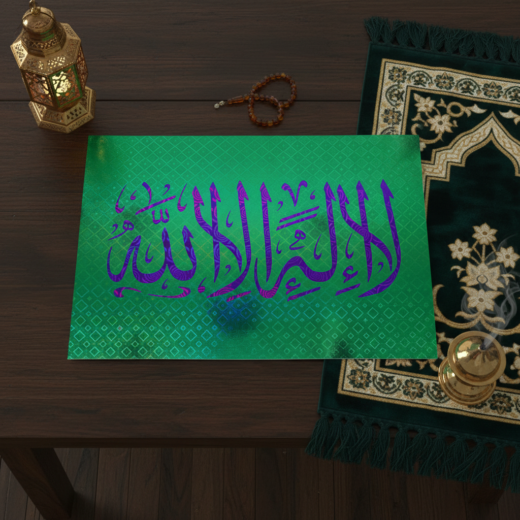 Embrassez la déclaration islamique fondamentale avec cette affiche plastifiée élégante présentant « La Ilaha Illa Allah » (Il n'y a de divinité qu'Allah) en calligraphie Thuluth raffinée. Cette œuvre sacrée transforme l'écriture arabe traditionnelle en une méditation visuelle sur la foi islamique et le monothéisme. La plastification protectrice préserve les détails complexes et les couleurs éclatantes contre le temps et l'usure environnementale. Idéale pour les espaces de prière, les bureaux à domicile ou les zones de méditation, cette affiche devient une affirmation quotidienne de conviction spirituelle. Une pièce intemporelle qui honore le cœur de la croyance islamique.
