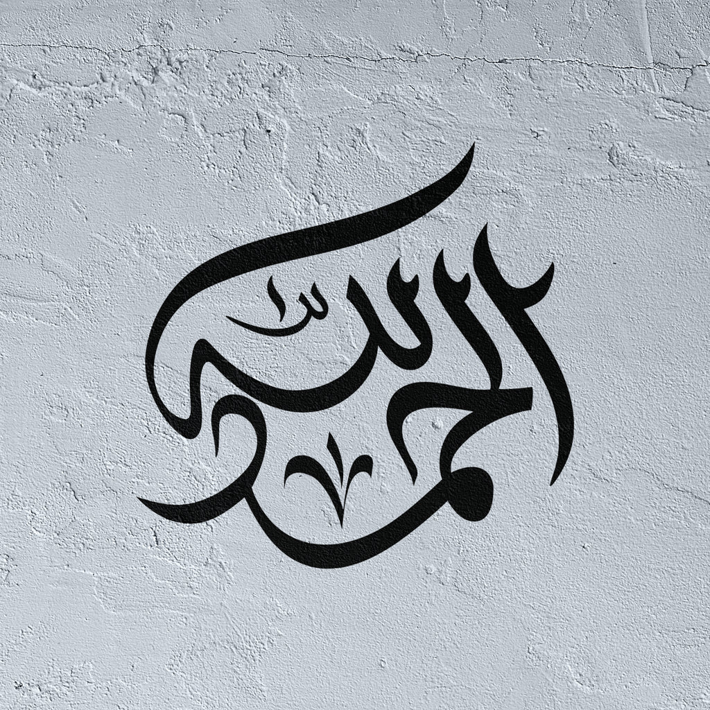 Express boundless gratitude with our Al Hamdulillah stencil, beautifully rendered in authentic Arabic calligraphy. This spiritually uplifting stencil captures the universal praise—"All praise belongs to God"—with graceful letterforms that radiate thankfulness and divine appreciation. Perfect for creating inspiring wall art, gratitude-centered spaces, or personal sanctuaries celebrating life's blessings, this versatile stencil transforms any surface into a beacon of appreciation and spiritual abundance. Ideal for artists, believers, and those wishing to cultivate an atmosphere of perpetual thanksgiving. Suitable for painting, stenciling, and heartfelt mixed media projects.