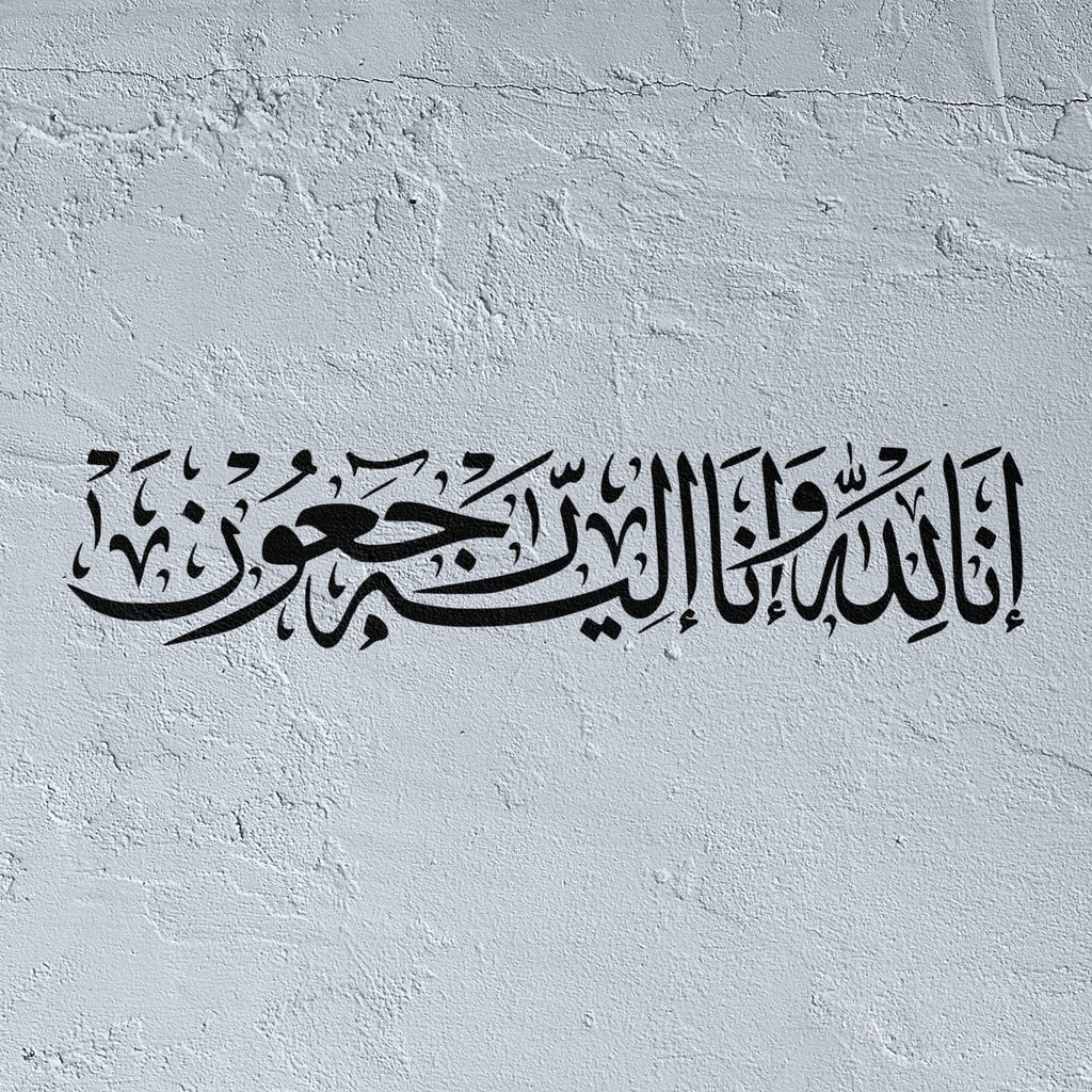 Find solace in faith with our Inna Lillahi Wa Inna Ilayhi Raji'un stencil, reverently designed in authentic Arabic calligraphy. This profoundly spiritual stencil renders the sacred verse—"Indeed we belong to God, and indeed to Him we will return"—with dignified letterforms that offer comfort during times of loss and reflection. Perfect for creating contemplative wall art, memorial spaces, or personal sanctuaries dedicated to remembrance and acceptance, this versatile stencil transforms any surface into a testament of faith and resilience. Ideal for artists, families, and those seeking spiritual grounding. Suitable for painting, stenciling, and heartfelt mixed media creations.