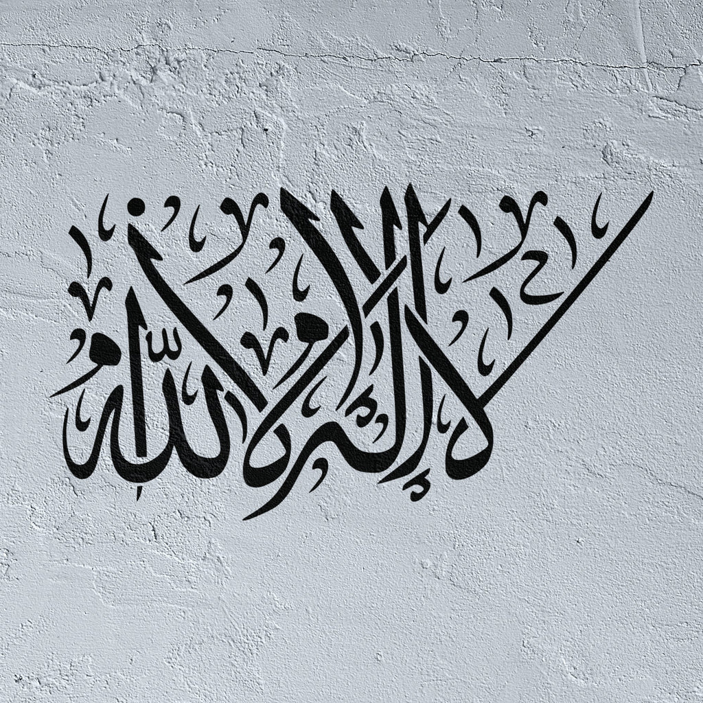 Affirm your faith with our La Ilaha Illallah stencil, majestically rendered in authentic Arabic calligraphy. This spiritually profound stencil captures the Islamic declaration of faith—"There is no deity except God"—with powerful letterforms that resonate with devotion and spiritual conviction. Perfect for creating sacred wall installations, prayer spaces, or personal sanctuaries dedicated to monotheistic worship, this versatile stencil allows you to express your deepest beliefs through visual artistry. Ideal for artists, believers, and those seeking to establish spiritual focal points in their homes. Suitable for painting, stenciling, and reverent mixed media projects.
