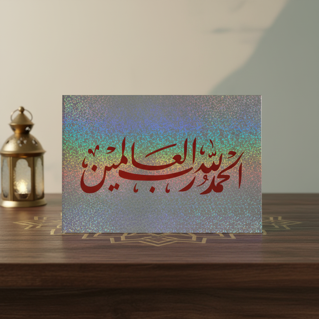 Adorn your walls with this exquisite laminated poster showcasing "Al Hamdoulilah Rabil Alamine" rendered in the ornate Diwani calligraphic style. This classical Arabic script, known for its flowing elegance and intricate flourishes, transforms the phrase of praise into a visual masterpiece. The premium laminated finish ensures longevity and vibrant color retention, making it an enduring symbol of gratitude and devotion. A sophisticated addition to any Islamic home décor collection.